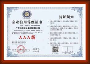 國(guó)家信用等級(jí)3A企業(yè)、東莞市農(nóng)業(yè)龍頭企業(yè)